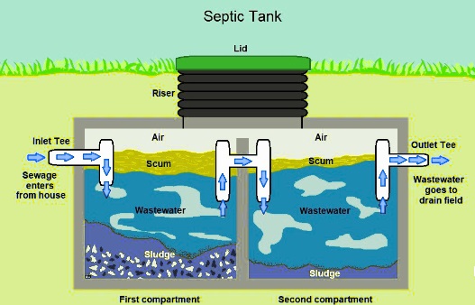 • The septic tank works to hold wastewater for a certain time that helps the decomposition of microorganisms in household waste and treats wastewater before removing it from the tank. It is done through separation of waste materials into three different layers.