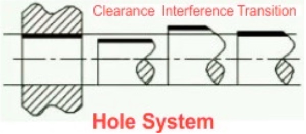 - In a hole basis system, different clearance and interference values are obtained through different shafts in a single hole with a low deviation of zero. Hole size is base size, and clearance is applied on the shaft dimension.