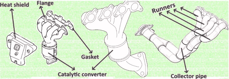 • The exhaust manifold becomes heated, so it mostly comes with a heat shield for the protection of other components and lines under the bonnet.