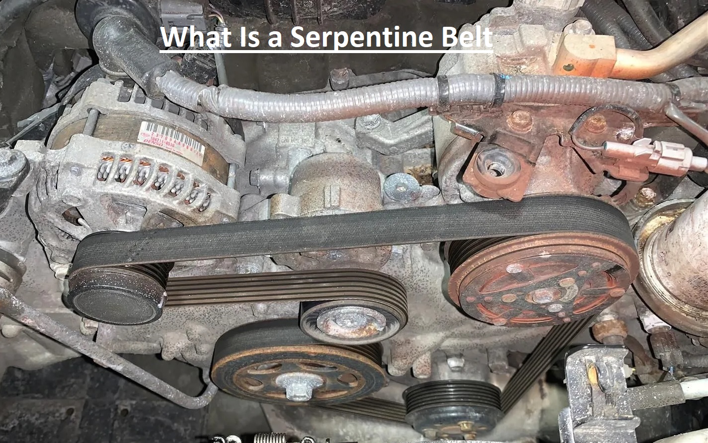 - Serpentine belt, also called a drive belt, is a continuous belt employed for operating different devices in the vehicle engine, like the power steering pump, water pump, alternator, AC compressor, etc.