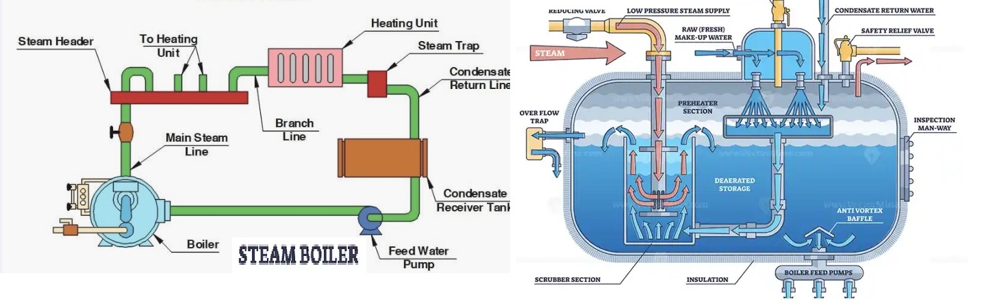 - Deaerators are pressurized feedwater tanks that use pressure and heat for removing oxygen and dissolved gases from water added into the boiler. Dissolved oxygen and carbon dioxide cause corrosion on the boiler.